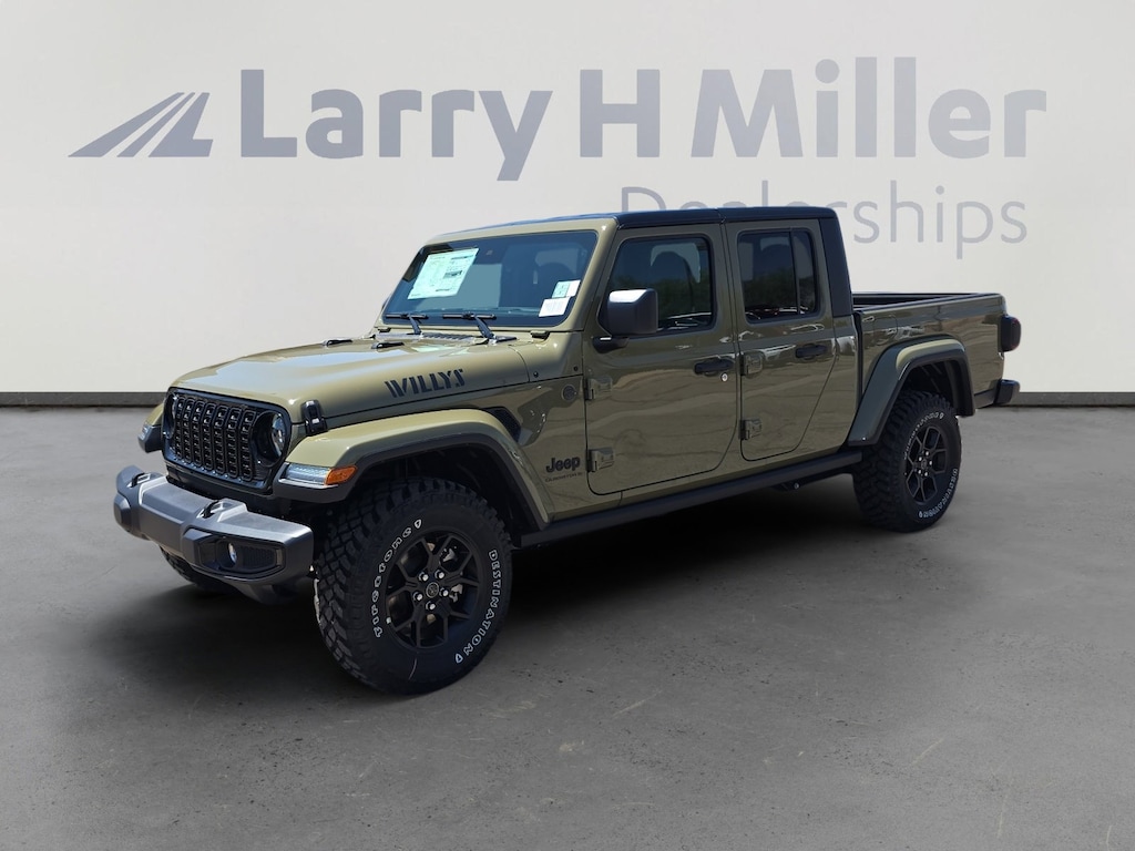 Delivers 22 Highway MPG and 17 City MPG! This Jeep Gladiator delivers a Regular Unleaded V-6 3.6 L/220 engine powering this Automatic transmission. TRANSMISSION: 8-SPEED AUTOMATIC (850RE) (STD), QUICK ORDER PACKAGE 24W WILLYS -inc: Engine: 3.6L V6 24V VVT UPG I w/ESS, Transmission: 8-Speed Automatic (850RE), LED Taillamps, Protection Sill Rails, 4-Wheel Drive Decal, Black Grille, Body Color Fender Flares (2-Piece), Front Heavy Duty Red Accent Shock Absorbers, Daytime Running Lamps LED Accents, Front LED Fog Lamps, LED Premium Reflector Headlamps, E-Locker Rear Axle, Trailer Hitch Zoom, Class IV Receiver Hitch, Security Alarm, Mold In Color Bumper w/Gloss Black, Advanced Brake Assist, Heavy Duty Engine Cooling, Automatic Headlamps, Air Conditioning w/Auto Temp Control, Deep Tint Sunscreen Windows, Off-Road Plus Mode, Willys Hood Decal, Full Speed Forward Collision Warning Plus, Rear Heavy Duty Red Accent Shock Absorbers, Front Door Locks 2-Door Passive Entry, 97 MPH Vehicle Max Speed Calibration, Cluster 7.0" TFT Color Display, Power Heated Mirrors, Enhanced Adaptive Cruise Control, Auxiliary Switches, Premium Wrapped Steering Wheel, Sun Visors w/Illuminated Vanity Mirrors, MOPAR SPRAY IN BEDLINER.