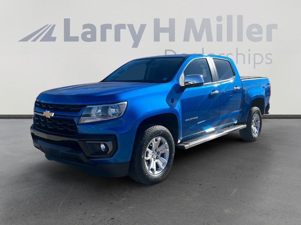This 2022 Bright Blue Metallic Chevrolet Colorado LT RWD is well equipped and includes these features and benefits: Heavy-Duty Trailering Package, LT Convenience Package (Front Fog Lamps, Manual Rear-Sliding Window, Rear-Window Electric Defogger, and Remote Vehicle Starter System), Preferred Equipment Group 2LT (Enhanced Driver Instrument Information Display and Rear Vision Camera), 4-Wheel Disc Brakes, 6 Speakers, 6-Speaker Audio System Feature, ABS brakes, Air Conditioning, Alloy wheels, AM/FM radio: SiriusXM, Apple CarPlay/Android Auto, Auto-dimming Rear-View mirror, Automatic Locking Rear Differential, Bumpers: body-color, Cloth Seat Trim, Compass, Delay-off headlights, Driver 6-Way Power Seat Adjuster, Driver door bin, Driver vanity mirror, Dual front impact airbags, Dual front side impact airbags, Electronic Stability Control, Exterior Parking Camera Rear, Front anti-roll bar, Front Bucket Seats, Front Center Armrest, Front reading lights, Front wheel independent suspension, Fully automatic headlights, Hitch Guidance, Illuminated entry, Low tire pressure warning, Occupant sensing airbag, Outside Heated Power-Adjustable Body-Color Mirrors, Outside temperature display, Overhead airbag, Overhead console, Panic alarm, Passenger door bin, Passenger vanity mirror, Power door mirrors, Power driver seat, Power steering, Power windows, Premium audio system: Chevrolet Infotainment 3, Radio data system, Radio: Chevrolet Infotainment 3 System, Rear reading lights, Rear seat center armrest, Rear step bumper, Remote keyless entry, Security system, SiriusXM Radio, Speed control, Speed-sensing steering, Steering wheel mounted audio controls, Tachometer, Telescoping steering wheel, Tilt steering wheel, Tow/Haul Mode, Traction control, Trip computer, Variably intermittent wipers, and Wheels: 17 x 8 Blade Silver Metallic Cast Alloy. 4-Wheel Disc Brakes, 6 Speakers, 6-Speaker Audio System Feature, ABS brakes, Air Conditioning, Alloy wheels, AM/FM radio: SiriusXM, Apple CarPlay/Android Auto, Auto-dimming Rear-View mirror, Automatic Locking Rear Differential, Bumpers: body-color, Cloth Seat Trim, Compass, Delay-off headlights, Driver 6-Way Power Seat Adjuster, Driver door bin, Driver vanity mirror, Dual front impact airbags, Dual front side impact airbags, Electronic Stability Control, Enhanced Driver Instrument Information Display, Exterior Parking Camera Rear, Front anti-roll bar, Front Bucket Seats, Front Center Armrest, Front Fog Lamps, Front reading lights, Front wheel independent suspension, Fully automatic headlights, Heavy-Duty Trailering Package, Hitch Guidance, Illuminated entry, Low tire pressure warning, LT Convenience Package, Manual Rear-Sliding Window, Occupant sensing airbag, Outside Heated Power-Adjustable Body-Color Mirrors, Outside temperature display, Overhead airbag, Overhead console, Panic alarm, Passenger door bin, Passenger vanity mirror, Power door mirrors, Power driver seat, Power steering, Power windows, Preferred Equipment Group 2LT, Premium audio system: Chevrolet Infotainment 3, Radio data system, Radio: Chevrolet Infotainment 3 System, Rear reading lights, Rear seat center armrest, Rear step bumper, Rear Vision Camera, Rear-Window Electric Defogger, Remote keyless entry, Remote Vehicle Starter System, Security system, SiriusXM Radio, Speed control, Speed-sensing steering, Steering wheel mounted audio controls, Tachometer, Telescoping steering wheel, Tilt steering wheel, Tow/Haul Mode, Traction control, Trip computer, Variably intermittent wipers, Wheels: 17 x 8 Blade Silver Metallic Cast Alloy.