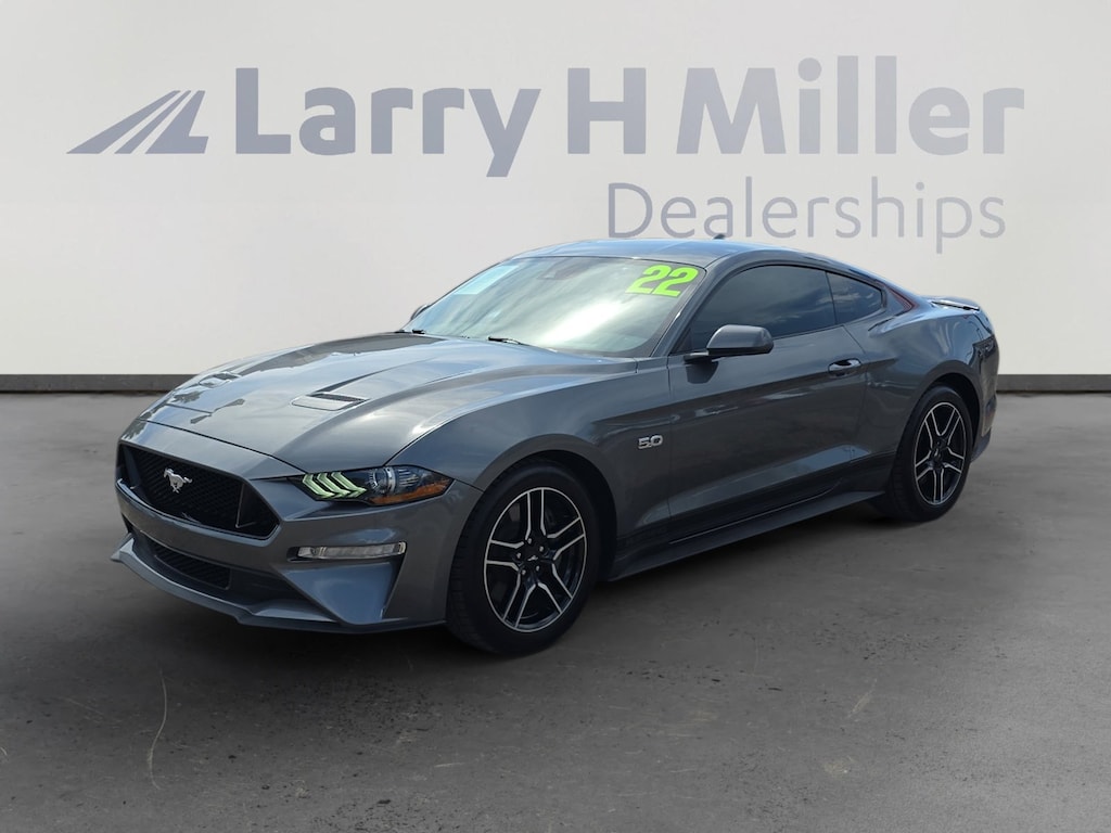 This 2022 Gray Metallic Ford Mustang GT RWD is well equipped and includes these features and benefits: Mustang GT, Gray Metallic, Air Conditioning, Four wheel independent suspension, Power steering, Power windows, Speed-sensing steering, Wheels: 18 x 8 Machined-Face Aluminum, 4-Wheel Disc Brakes, 6 Speakers, ABS brakes, Alloy wheels, AM/FM radio, AM/FM Stereo, Auto High-beam Headlights, Auto-dimming Rear-View mirror, Brake assist, Bumpers: body-color, Cloth Bucket Seats, Compass, Delay-off headlights, Driver door bin, Driver vanity mirror, Dual front impact airbags, Dual front side impact airbags, Electronic Stability Control, Emergency communication system: 911 Assist, Exterior Parking Camera Rear, Front anti-roll bar, Front Bucket Seats, Front Center Armrest, Front fog lights, Front reading lights, Fully automatic headlights, Illuminated entry, Knee airbag, Leather Shift Knob, Low tire pressure warning, Occupant sensing airbag, Outside temperature display, Overhead airbag, Overhead console, Panic alarm, Passenger door bin, Passenger vanity mirror, Power door mirrors, Power driver seat, Power passenger seat, Radio data system, Rain sensing wipers, Rear anti-roll bar, Rear Parking Sensors, Rear window defroster, Remote keyless entry, Security system, Speed control, Speed-Sensitive Wipers, Split folding rear seat, Spoiler, Steering wheel mounted audio controls, SYNC Communications & Entertainment System, Tachometer, Telescoping steering wheel, Tilt steering wheel, Traction control, Trip computer, Variably intermittent wipers, and Voltmeter. Mustang GT, Gray Metallic, Air Conditioning, Four wheel independent suspension, Power steering, Power windows, Speed-sensing steering, Wheels: 18 x 8 Machined-Face Aluminum, 4-Wheel Disc Brakes, 6 Speakers, ABS brakes, Alloy wheels, AM/FM radio, AM/FM Stereo, Auto High-beam Headlights, Auto-dimming Rear-View mirror, Brake assist, Bumpers: body-color, Cloth Bucket Seats, Compass, Delay-off headlights, Driver door bin, Driver vanity mirror, Dual front impact airbags, Dual front side impact airbags, Electronic Stability Control, Emergency communication system: 911 Assist, Exterior Parking Camera Rear, Front anti-roll bar, Front Bucket Seats, Front Center Armrest, Front fog lights, Front reading lights, Fully automatic headlights, Illuminated entry, Knee airbag, Leather Shift Knob, Low tire pressure warning, Occupant sensing airbag, Outside temperature display, Overhead airbag, Overhead console, Panic alarm, Passenger door bin, Passenger vanity mirror, Power door mirrors, Power driver seat, Power passenger seat, Radio data system, Rain sensing wipers, Rear anti-roll bar, Rear Parking Sensors, Rear window defroster, Remote keyless entry, Security system, Speed control, Speed-Sensitive Wipers, Split folding rear seat, Spoiler, Steering wheel mounted audio controls, SYNC Communications & Entertainment System, Tachometer, Telescoping steering wheel, Tilt steering wheel, Traction control, Trip computer, Variably intermittent wipers, Voltmeter, Mustang GT, Gray Metallic, Air Conditioning, Four wheel independent suspension, Power steering, Power windows, Speed-sensing steering, Wheels: 18 x 8 Machined-Face Aluminum.