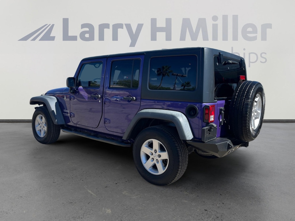 This 2017 Xtreme Purple Pearlcoat Jeep Wrangler Unlimited Sport 4WD is well equipped and includes these features and benefits: Quick Order Package 24S (17 x 7.5 Aluminum Wheels, Auto-Dimming Mirror w/Reading Lamp, Chrome/Leather Wrapped Shift Knob, Deep Tint Sunscreen Windows, Front 1-Touch Down Power Windows, Leather Wrapped Steering Wheel, Power Convenience Group, Power Heated Mirrors, Power Locks, Remote Keyless Entry, and Security Alarm), 16 x 7.0 Luxury Styled Steel Wheels, 3.21 Rear Axle Ratio, 4-Wheel Disc Brakes, 8 Speakers, ABS brakes, Air Conditioning, AM/FM radio, Anti-Spin Differential Rear Axle, Black 3-Piece Hard Top, Brake assist, CD player, Cloth Seats w/Adjustable Head Restraints, Compass, Delete Sunrider Soft Top, Driver door bin, Driver vanity mirror, Dual front impact airbags, Electronic Stability Control, Freedom Panel Storage Bag, Front anti-roll bar, Front Bucket Seats, Front Center Armrest w/Storage, Front fog lights, Integrated roll-over protection, Low tire pressure warning, Manufacturer's Statement of Origin, Normal Duty Suspension, Occupant sensing airbag, Outside temperature display, Passenger door bin, Passenger vanity mirror, Power steering, Radio: 130, Rear anti-roll bar, Rear Window Defroster, Rear Window Wiper/Washer, Speed control, Split folding rear seat, Steering wheel mounted audio controls, Tachometer, Tilt steering wheel, Traction control, Trip computer, and Variably intermittent wipers. 16 x 7.0 Luxury Styled Steel Wheels, 17 x 7.5 Aluminum Wheels, 3.21 Rear Axle Ratio, 4-Wheel Disc Brakes, 8 Speakers, ABS brakes, Air Conditioning, AM/FM radio, Anti-Spin Differential Rear Axle, Auto-Dimming Mirror w/Reading Lamp, Black 3-Piece Hard Top, Brake assist, CD player, Chrome/Leather Wrapped Shift Knob, Cloth Seats w/Adjustable Head Restraints, Compass, Deep Tint Sunscreen Windows, Delete Sunrider Soft Top, Driver door bin, Driver vanity mirror, Dual front impact airbags, Electronic Stability Control, Freedom Panel Storage Bag, Front 1-Touch Down Power Windows, Front anti-roll bar, Front Bucket Seats, Front Center Armrest w/Storage, Front fog lights, Integrated roll-over protection, Leather Wrapped Steering Wheel, Low tire pressure warning, Manufacturer's Statement of Origin, Normal Duty Suspension, Occupant sensing airbag, Outside temperature display, Passenger door bin, Passenger vanity mirror, Power Convenience Group, Power Heated Mirrors, Power Locks, Power steering, Quick Order Package 24S, Radio: 130, Rear anti-roll bar, Rear Window Defroster, Rear Window Wiper/Washer, Remote Keyless Entry, Security Alarm, Speed control, Split folding rear seat, Steering wheel mounted audio controls, Tachometer, Tilt steering wheel, Traction control, Trip computer, Variably intermittent wipers.