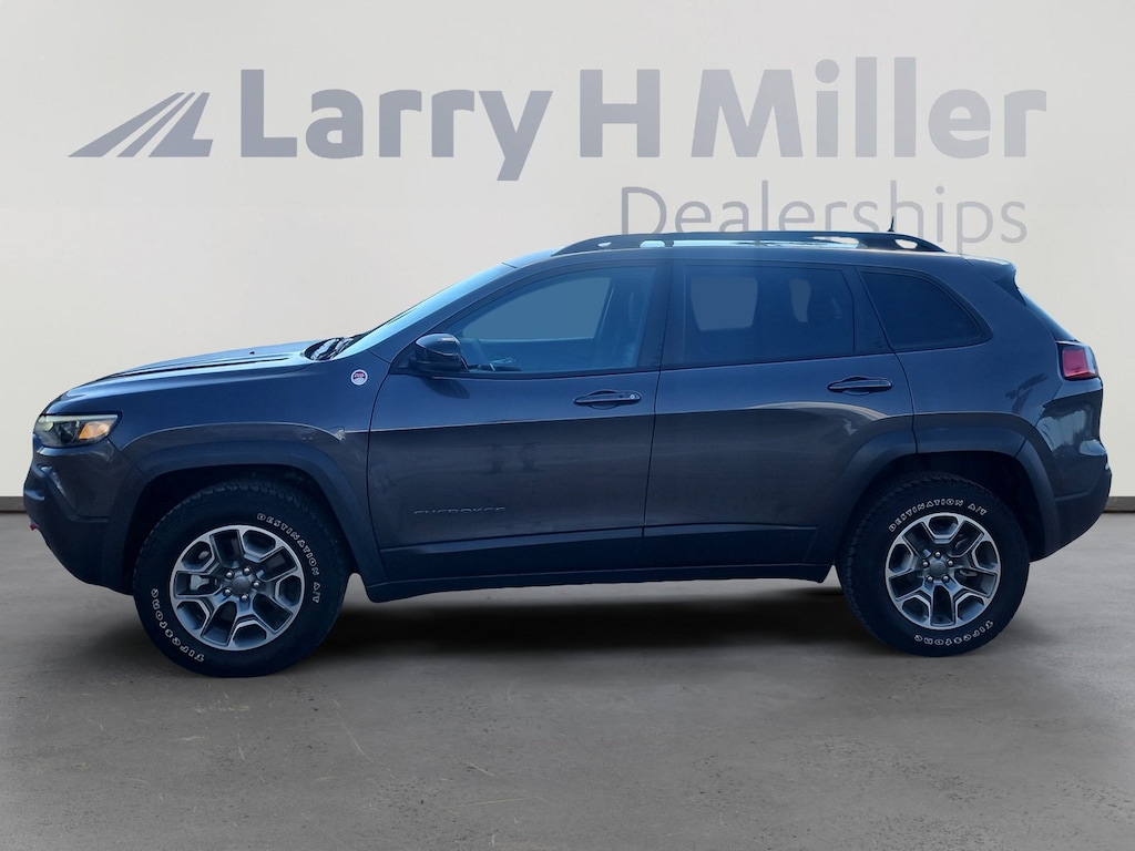 This 2022 Granite Crystal Metallic Clearcoat Jeep Cherokee Trailhawk 4WD is well equipped and includes these features and benefits: Comfort/Convenience Group (Auto-Dimming Rear-View Mirror, Hands-Free Power Liftgate, Security Alarm, and Universal Garage Door Opener), Premium Leather Package (Exterior Mirrors w/Memory, Power 8-Way Adjustable Front Passenger Seat, Power Passenger Lumbar Adjust, Premium Leather Trimmed Bucket Seats, Radio/Driver Seat/Exterior Mirrors Memory, and Ventilated Front Seats), Quick Order Package 27E, Sound & Nav Group (1-Year SiriusXM Guardian Trial, 4G LTE Wi-Fi Hot Spot, 5-Year SiriusXM Traffic Service, 5-Year SiriusXM Travel Link Service, 8.4 Touchscreen Display, Apple CarPlay, For Details, Visit DriveUconnect.com, For More Info, Call 800-643-2112, Google Android Auto, GPS Antenna Input, GPS Navigation, HD Radio, Integrated Voice Command w/Bluetooth, Off-Road Info Pages, Premium Alpine Speaker System, Radio: Uconnect 4C Nav w/8.4 Display, SiriusXM Radio Service, SiriusXM Satellite Radio, SiriusXM Traffic Plus, SiriusXM Travel Link, and USB Host Flip), Technology Group B (Adaptive Cruise Control w/Stop & Go and Auto High Beam Headlamp Control), 3.517 Final Drive Ratio, 4-Wheel Disc Brakes, 6 Speakers, ABS brakes, Air Conditioning, Alloy wheels, AM/FM radio: SiriusXM, Anti-whiplash front head restraints, Apple CarPlay/Android Auto, Automatic temperature control, Brake assist, Cloth/Premium Vinyl Bucket Seats, Compass, Delay-off headlights, Driver door bin, Driver vanity mirror, Dual front impact airbags, Dual front side impact airbags, Electronic Stability Control, Four wheel independent suspension, Front anti-roll bar, Front Bucket Seats, Front Center Armrest, Front dual zone A/C, Front fog lights, Front reading lights, Fully automatic headlights, Heated door mirrors, Heated front seats, Heated steering wheel, Illuminated entry, K-Black Door Trim Panel Appliques, K-Black Interior Accents, Knee airbag, Leather Shift Knob, Low tire pressure warning, Occupant sensing airbag, Off Road Suspension, Outside temperature display, Overhead airbag, Overhead console, Panic alarm, ParkView Rear Back-Up Camera, Passenger door bin, Passenger vanity mirror, Power door mirrors, Power driver seat, Power steering, Power windows, Radio data system, Radio: Uconnect 4 w/8.4 Display, Rain sensing wipers, Rear anti-roll bar, Rear reading lights, Rear seat center armrest, Rear side impact airbag, Rear window defroster, Rear window wiper, Remote keyless entry, Roof rack: rails only, Speed control, Speed-sensing steering, Split folding rear seat, Spoiler, Steering wheel mounted audio controls, Tachometer, Telescoping steering wheel, Tilt steering wheel, Traction control, Trip computer, Turn signal indicator mirrors, Variably intermittent wipers, Voltmeter, and Wheels: 17 x 7.5 Painted Diamond Cut AluminuM. 1-Year SiriusXM Guardian Trial, 3.517 Final Drive Ratio, 4-Wheel Disc Brakes, 4G LTE Wi-Fi Hot Spot, 5-Year SiriusXM Traffic Service, 5-Year SiriusXM Travel Link Service, 6 Speakers, 8.4 Touchscreen Display, ABS brakes, Adaptive Cruise Control w/Stop & Go, Air Conditioning, Alloy wheels, AM/FM radio: SiriusXM, Anti-whiplash front head restraints, Apple CarPlay, Apple CarPlay/Android Auto, Auto High Beam Headlamp Control, Auto-Dimming Rear-View Mirror, Automatic temperature control, Brake assist, Cloth/Premium Vinyl Bucket Seats, Comfort/Convenience Group, Compass, Delay-off headlights, Driver door bin, Driver vanity mirror, Dual front impact airbags, Dual front side impact airbags, Electronic Stability Control, Exterior Mirrors w/Memory, For Details, Visit DriveUconnect.com, For More Info, Call 800-643-2112, Four wheel independent suspension, Front anti-roll bar, Front Bucket Seats, Front Center Armrest, Front dual zone A/C, Front fog lights, Front reading lights, Fully automatic headlights, Google Android Auto, GPS Antenna Input, GPS Navigation, Hands-Free Power Liftgate, HD Radio, Heated door mirrors, Heated front se