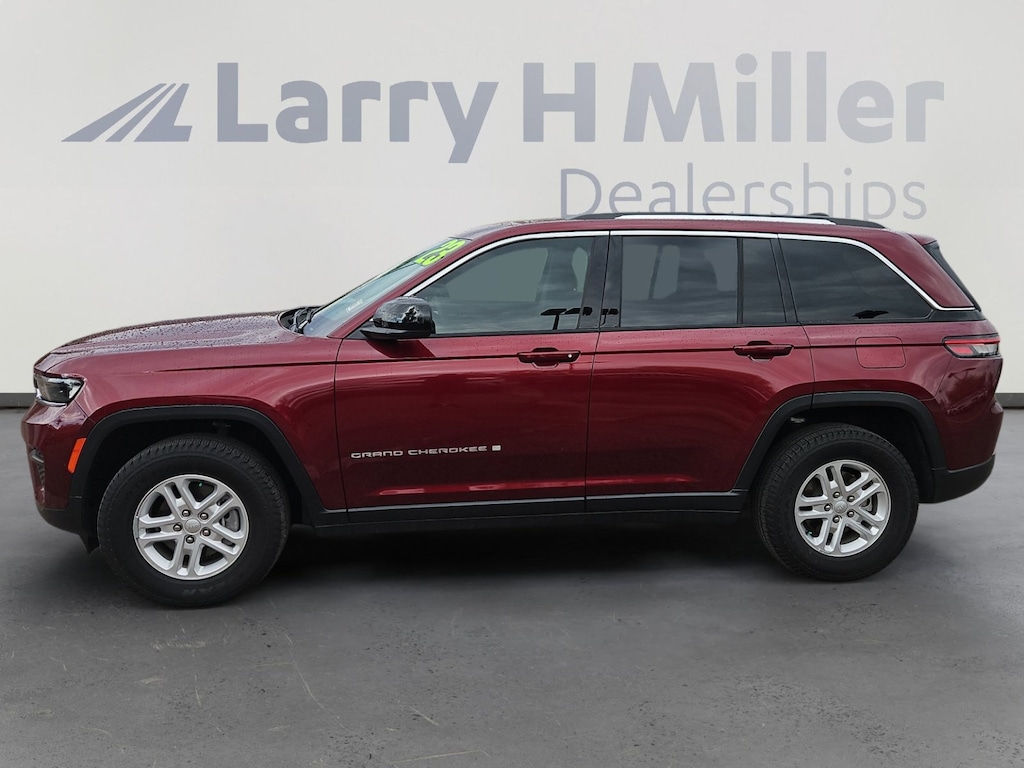 This 2023 Velvet Red Pearlcoat Jeep Grand Cherokee Laredo 4WD is well equipped and includes these features and benefits: Quick Order Package 23A Laredo, Trailer Tow Prep Group (B) (DISC) (180 Amp Alternator, Automatic Headlamp Levelling System, Heavy-Duty Engine Cooling, Rear Load Levelling Suspension, and Trailer Hitch Zoom), 4WD, 3.45 Rear Axle Ratio, 4-Wheel Disc Brakes, 6 Speakers, ABS brakes, Air Conditioning, Alloy wheels, Anti-whiplash front head restraints, Automatic temperature control, Brake assist, Bumpers: body-color, Cloth Seats, Compass, Delay-off headlights, Driver door bin, Driver vanity mirror, Dual front impact airbags, Dual front side impact airbags, Electronic Stability Control, Emergency communication system, Four wheel independent suspension, Front anti-roll bar, Front Bucket Seats, Front Center Armrest w/Storage, Front dual zone A/C, Front License Plate Bracket, Front reading lights, Fully automatic headlights, Heated door mirrors, Illuminated entry, Knee airbag, Low tire pressure warning, Molded In Color Black/Gloss Black Roof Rails, Normal Duty Suspension, Occupant sensing airbag, Outside temperature display, Overhead airbag, Overhead console, Panic alarm, ParkView Rear Back-Up Camera, Passenger door bin, Passenger vanity mirror, Power door mirrors, Power driver seat, Power steering, Power windows, Radio data system, Radio: Uconnect 5 w/8.4 Display, Rear anti-roll bar, Rear reading lights, Rear window defroster, Rear window wiper, Remote keyless entry, Security system, Speed control, Speed-Sensitive Wipers, Split folding rear seat, Spoiler, Steering wheel mounted audio controls, Tachometer, Telescoping steering wheel, Tilt steering wheel, Traction control, Trip computer, Variably intermittent wipers, Voltmeter, and Wheels: 17 x 6.5 Fully Painted Aluminum. 4WD, 180 Amp Alternator, 3.45 Rear Axle Ratio, 4-Wheel Disc Brakes, 6 Speakers, ABS brakes, Air Conditioning, Alloy wheels, Anti-whiplash front head restraints, Automatic Headlamp Levelling System, Automatic temperature control, Brake assist, Bumpers: body-color, Cloth Seats, Compass, Delay-off headlights, Driver door bin, Driver vanity mirror, Dual front impact airbags, Dual front side impact airbags, Electronic Stability Control, Emergency communication system, Four wheel independent suspension, Front anti-roll bar, Front Bucket Seats, Front Center Armrest w/Storage, Front dual zone A/C, Front License Plate Bracket, Front reading lights, Fully automatic headlights, Heated door mirrors, Heavy-Duty Engine Cooling, Illuminated entry, Knee airbag, Low tire pressure warning, Molded In Color Black/Gloss Black Roof Rails, Normal Duty Suspension, Occupant sensing airbag, Outside temperature display, Overhead airbag, Overhead console, Panic alarm, ParkView Rear Back-Up Camera, Passenger door bin, Passenger vanity mirror, Power door mirrors, Power driver seat, Power steering, Power windows, Quick Order Package 23A Laredo, Radio data system, Radio: Uconnect 5 w/8.4 Display, Rear anti-roll bar, Rear Load Levelling Suspension, Rear reading lights, Rear window defroster, Rear window wiper, Remote keyless entry, Security system, Speed control, Speed-Sensitive Wipers, Split folding rear seat, Spoiler, Steering wheel mounted audio controls, Tachometer, Telescoping steering wheel, Tilt steering wheel, Traction control, Trailer Hitch Zoom, Trailer Tow Prep Group (B) (DISC), Trip computer, Variably intermittent wipers, Voltmeter, Wheels: 17 x 6.5 Fully Painted Aluminum, 4WD.
