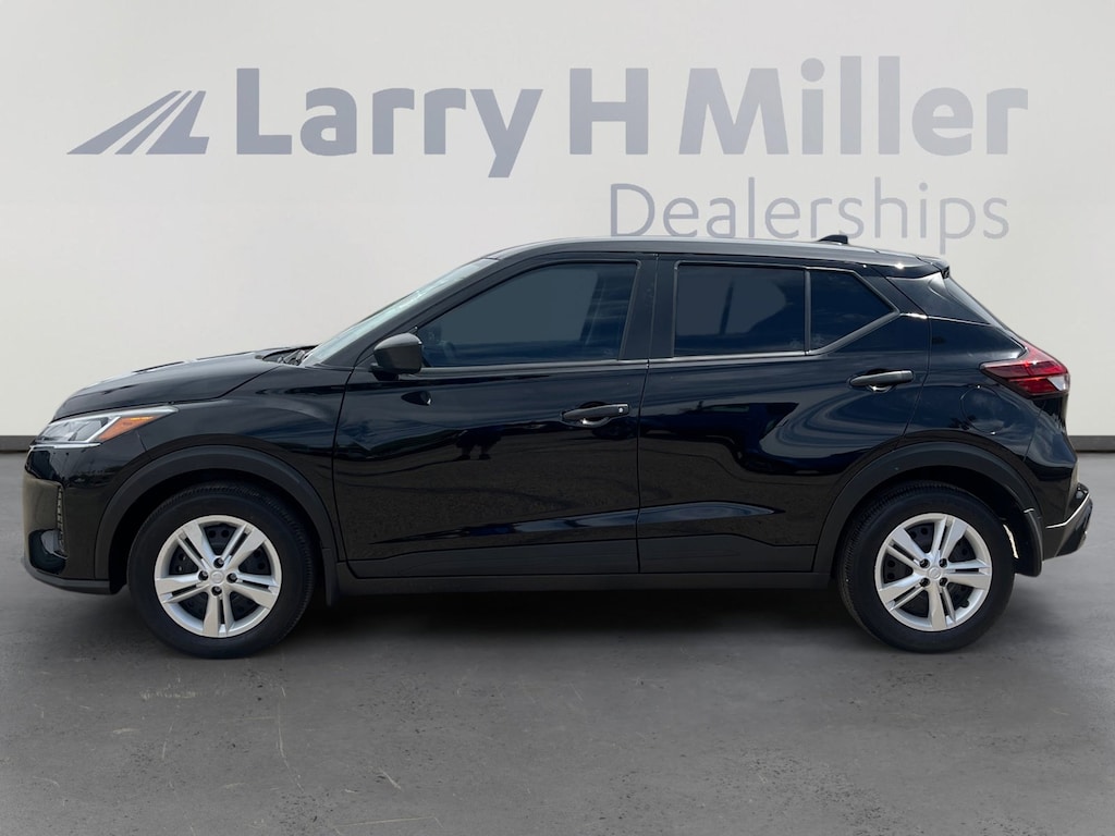 This 2025 Super Black Nissan Kicks Play S FWD is well equipped and includes these features and benefits: 16 Steel Wheels with Full Covers, 6 Speakers, ABS brakes, Air Conditioning, AM/FM Audio System, AM/FM radio, Apple CarPlay/Android Auto, Auto High-beam Headlights, Blind Spot Warning, Brake assist, Bumpers: body-color, Carpeted Floor Mats with Cargo Mat, Center Armrest with Storage, Cloth Seat Trim with Single Stitch, Driver door bin, Driver vanity mirror, Driver's Seat Mounted Armrest, Dual front impact airbags, Dual front side impact airbags, Electronic Stability Control, Front anti-roll bar, Front Bucket Seats, Front reading lights, Front wheel independent suspension, Fully automatic headlights, Illuminated entry, Knee airbag, Low tire pressure warning, Occupant sensing airbag, Outside temperature display, Overhead airbag, Panic alarm, Passenger door bin, Passenger vanity mirror, Power door mirrors, Power steering, Power windows, Radio data system, Rear Parking Sensors, Rear reading lights, Rear side impact airbag, Rear window defroster, Rear window wiper, Remote keyless entry, Speed control, Splash Guards Grain (4 Piece), Split folding rear seat, Sport steering wheel, Steering wheel mounted audio controls, Tachometer, Telescoping steering wheel, Tilt steering wheel, Traction control, Trip computer, and Variably intermittent wipers. 16 Steel Wheels with Full Covers, 6 Speakers, ABS brakes, Air Conditioning, AM/FM Audio System, AM/FM radio, Apple CarPlay/Android Auto, Auto High-beam Headlights, Blind Spot Warning, Brake assist, Bumpers: body-color, Carpeted Floor Mats with Cargo Mat, Center Armrest with Storage, Cloth Seat Trim with Single Stitch, Driver door bin, Driver vanity mirror, Driver's Seat Mounted Armrest, Dual front impact airbags, Dual front side impact airbags, Electronic Stability Control, Front anti-roll bar, Front Bucket Seats, Front reading lights, Front wheel independent suspension, Fully automatic headlights, Illuminated entry, Knee airbag, Low tire pressure warning, Occupant sensing airbag, Outside temperature display, Overhead airbag, Panic alarm, Passenger door bin, Passenger vanity mirror, Power door mirrors, Power steering, Power windows, Radio data system, Rear Parking Sensors, Rear reading lights, Rear side impact airbag, Rear window defroster, Rear window wiper, Remote keyless entry, Speed control, Splash Guards Grain (4 Piece), Split folding rear seat, Sport steering wheel, Steering wheel mounted audio controls, Tachometer, Telescoping steering wheel, Tilt steering wheel, Traction control, Trip computer, Variably intermittent wipers.